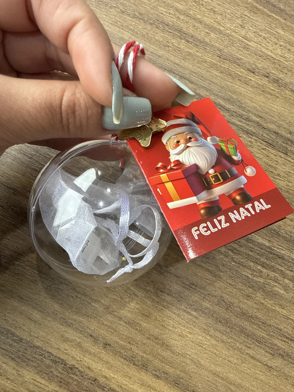 Embalagem vai com a peça dentro e pode ser colocada na árvore de Natal