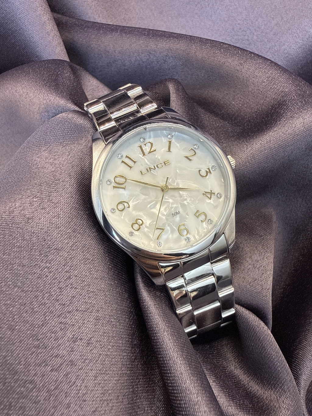Relógio lince fundo branco marmorizado com zircônia